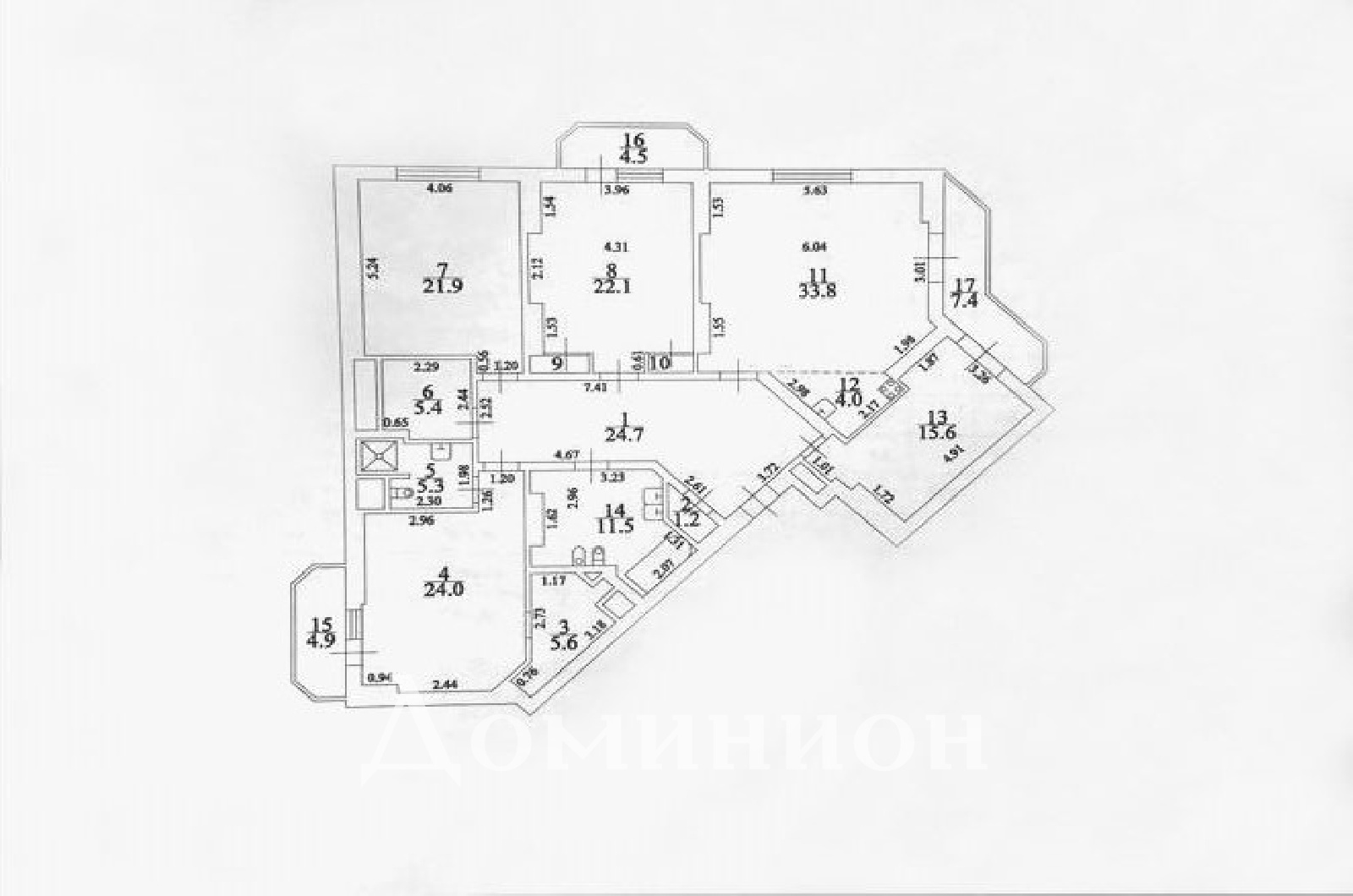 Планировка: кухня-столовая-гостиная, 3 спальни, кабинет, 2 санузла, 2 гардеробные, 3 лоджии.